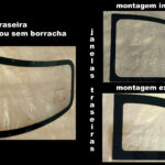 A) Kit para montagem tradicional, janelas dianteiras dentro das portas e vigia traseira para ser montada com a borracha original.